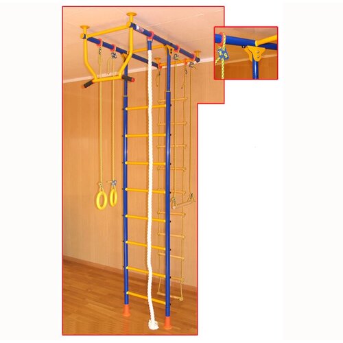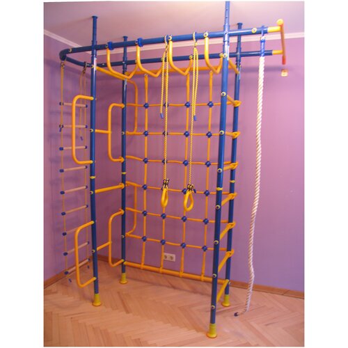 ДСК для дома "Веселый Непоседа" MASTER Т-образный, синий-желтый, турник с широким хватом, ступени металл