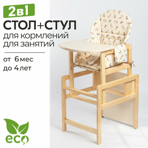 Алиса» – практичная мебель для ребёнка от 6 месяцев, которая позволяет посадить малыша за обеденный стол и без труда покормить его. Стульчик для кормления малыша – преимущества: Универсальность. Стульчик-трансформер 2 в 1 легко превращается из стула для кормления в столик для игр и рисования и невысокий стульчик. Экологичность. Стульчик изготовлен из массива натурального дерева, поэтому деревянный стул гораздо крепче и практичнее пластикового. Безопасность. Ремень безопасности – страховочная лента – предотвратит падение и сползание крохи. Кроме того, закруглённые углы и шлифованная поверхность древесины обезопасит его от нежелательных травм. Устойчивость. Мебель имеет устойчивое основание, а значит Вашему малышу будет комфортно находиться на стуле. Мобильность. Мобильный стульчик для кормления Вы сможете легко перемещать, чтобы поставить его в удобное для Вас и Вашего малыша место. Удобство. Сиденье стульчика покрыто мягкой накладкой – чехлом, который может заменить детский ма