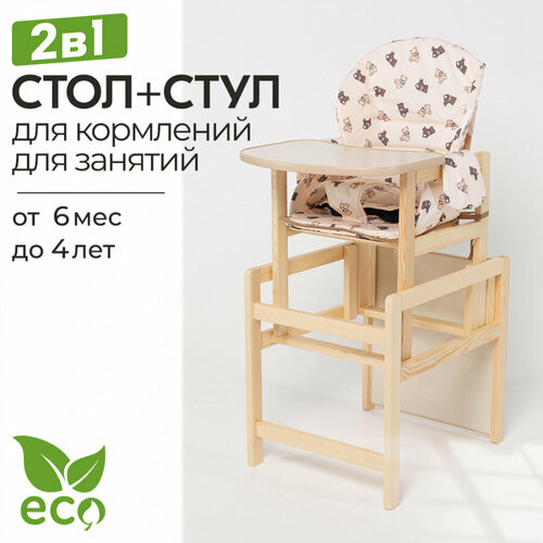 Стульчик детский Маяк для кормления со столом с чехлом мишки бежевые и коричневые