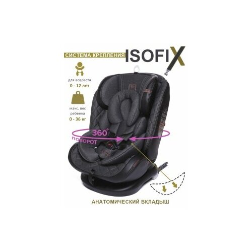 Детское удерживающее устройство Shelter гр 0+/I/II/III, 0-36кг, (0-12лет)BabyCare, Темно-серый