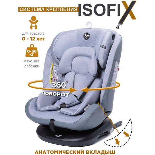 Детское удерживающее устройство Shelter гр 0+/I/II/III, 0-36кг, (0-12лет)BabyCare, Светло-серый