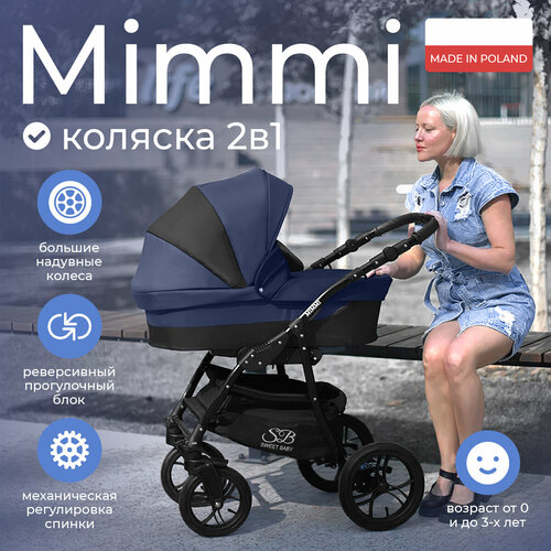 Всесезонная универсальная коляска 2в1 с надувными колесами Sweet Baby Mimmi Marine