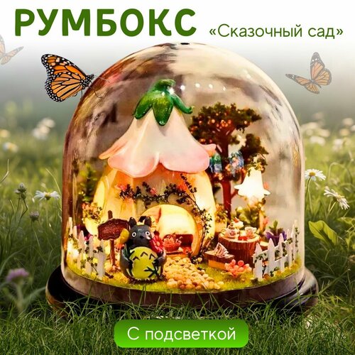 Интерьерный конструктор с подсветкой "Сказочный сад" с фигуркой Тоторо, румбокс, миниатюра DIY House, набор в подарок для детей и взрослых
