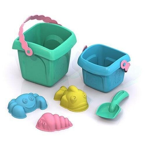 Набор для песка Шкода "Лето" №7 (ведро большое и малое+совок большой+3 формочки) 34х23х12 см.