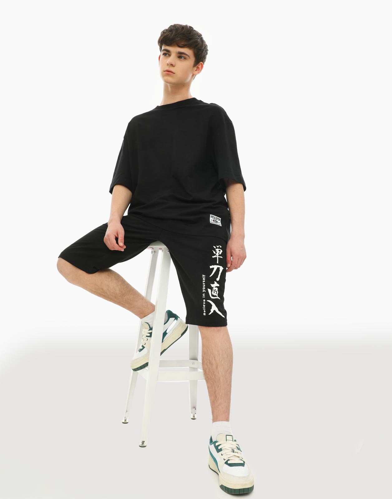 Чёрные шорты comfort с принтом для мальчика Gloria Jeans 8-10л/140 BSH007159
