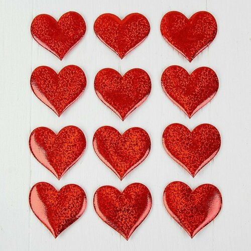 Сердечки декоративные, набор 12 шт, размер 1 шт: 6,5×6 см, (комплект из 10 шт)