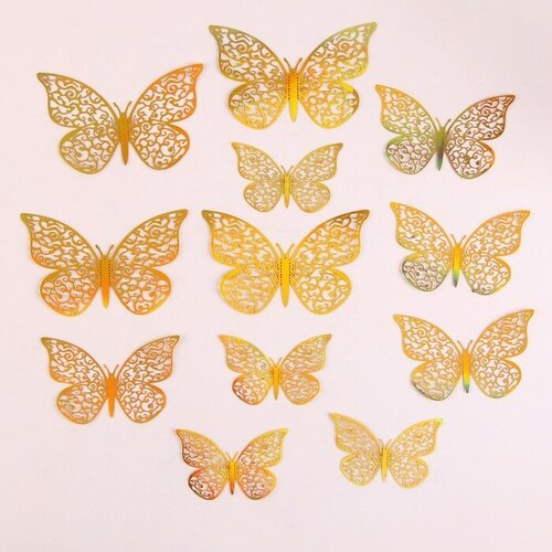 Набор для украшения "Бабочки", 12 штук, голография, цвет золото