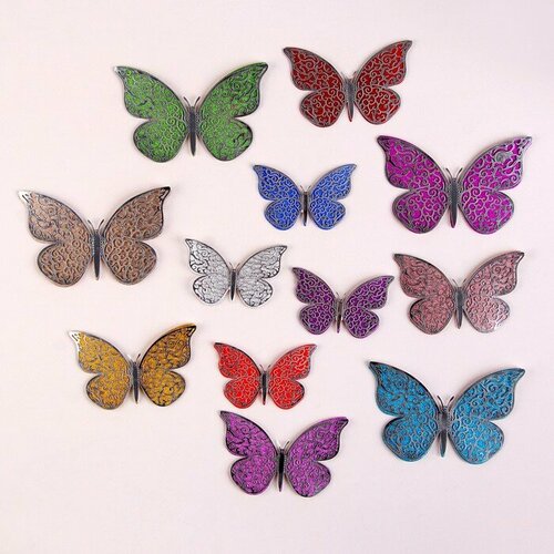 Набор для украшения «Бабочки», серебряный слой, 12 штук, цвета микс