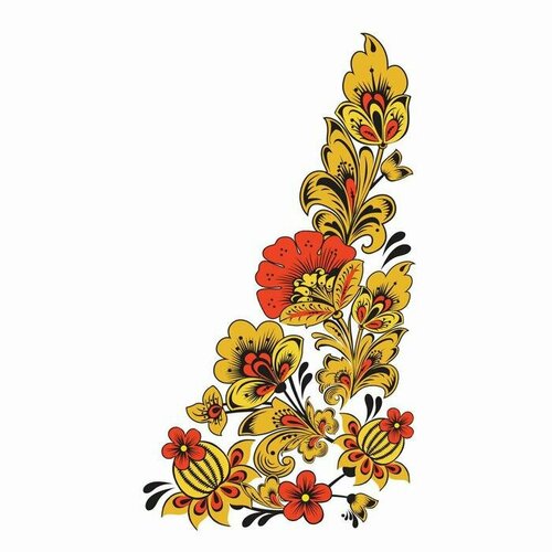 Термотрансфер «Хохлома цветы», уголок слева, 15 х 30 см, набор 10 шт.