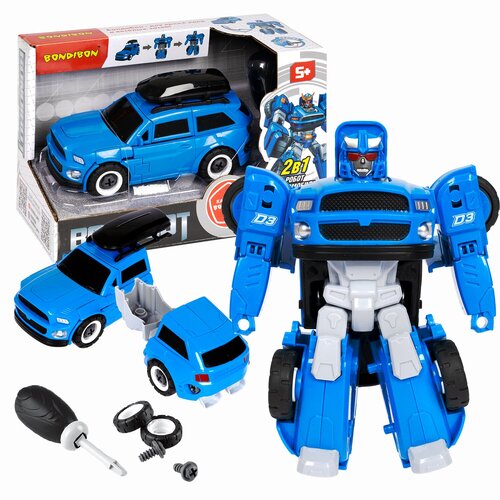 Трансформер 2в1 BONDIBOT Bondibon робот-автомобиль с отвёрткой, джип с багажником, BOX 21x10х1
