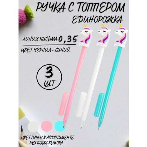 Ручка шариковая синяя с топпером Единорожка, 3 шт.