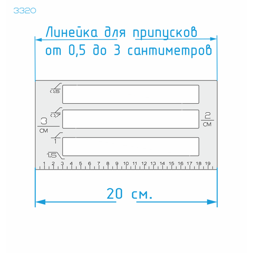Линейка для припусков Универсальная от 0,5 до 3 см, длинна 20 см,"Быстро и точно", Припуски на швы.