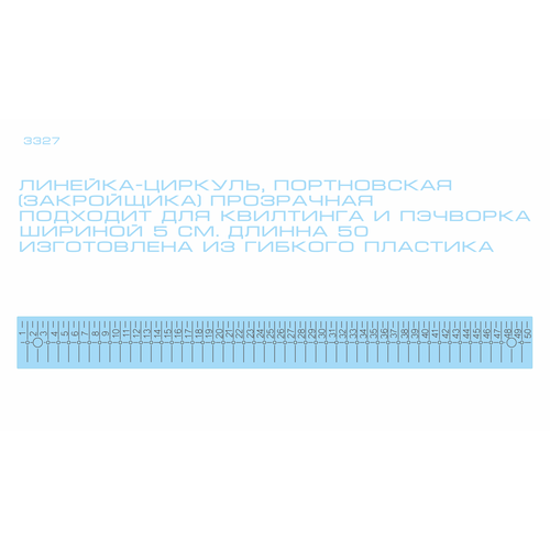 Линейка-циркуль, Портновская (закройщика) прозрачная подходит для квилтинга и пэчворка, шириной 5 см. длинна 50