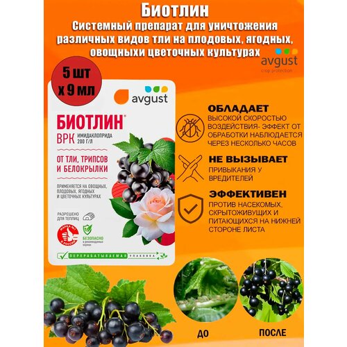 Средство Биотлин Avgust от тли, белокрылки, трипсов на плодовых, ягодных, овощных и цветочных культурах, 9 мл