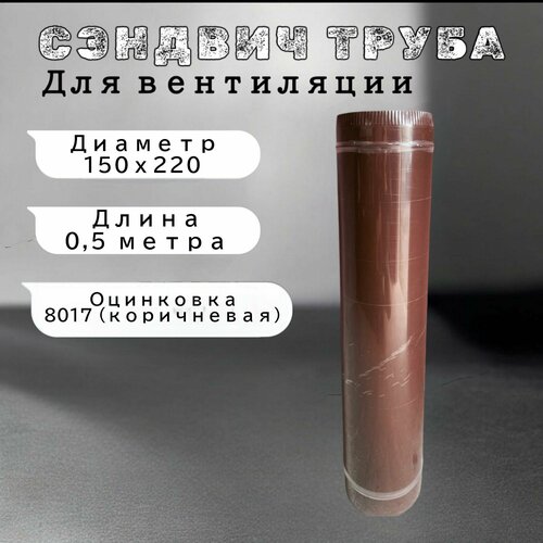Сэндвич-труба для вентиляции 0,5м, 150х220, оцинкованная сталь, 8017/коричневая