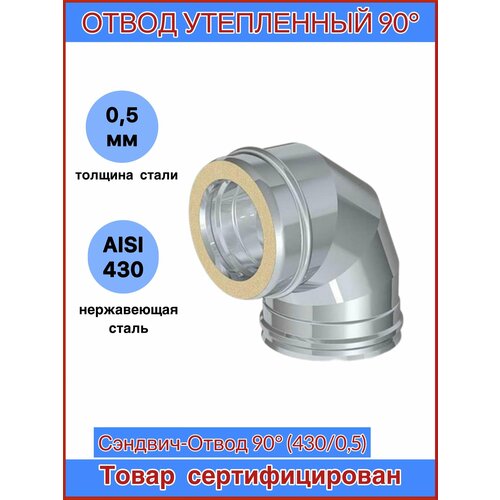Отвод утепленный для дымохода 90гр. Ф130х200 (430/0,5х430/0,5) CORAX
