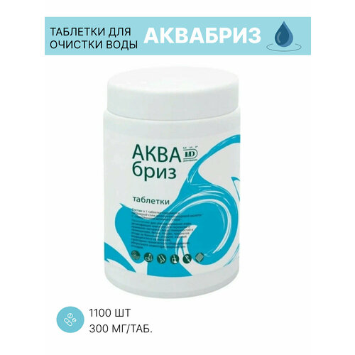 Таблетки для обеззараживания воды Аквабриз 300мг. 1 банка, 1100 табл. / Хлорные таблетки для дезинфекции воды/Дезинфицирующее средства для поверхност