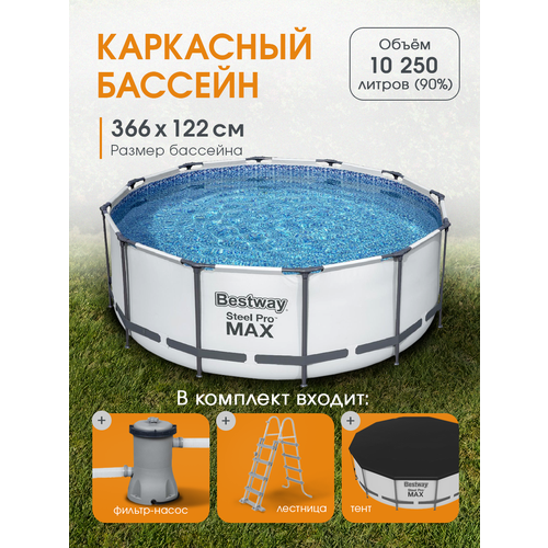 Бассейн каркасный Steel Pro Max Bestway 366см х 122см, 10250 л (фильтр-насос, лестница, тент в комплекте)