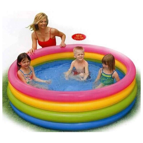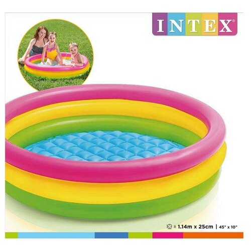 Бассейн надувной детский INTEX "Sunset Glow Pool" (Радужный), 114x25 см, от 2х лет, с надувным дном int57412NP