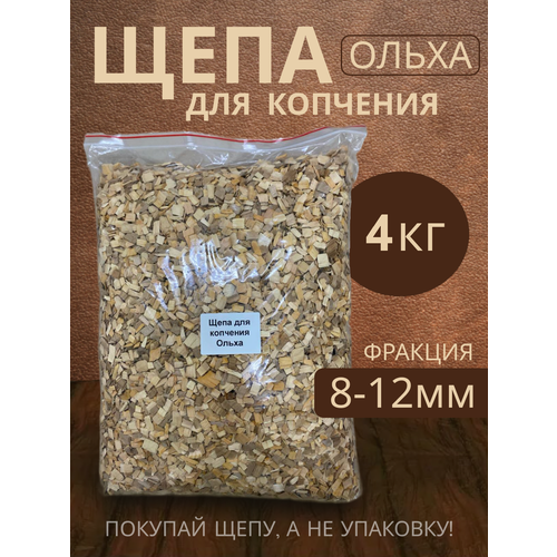 Щепа для копчения ольха , 4 кг. ольховая щепа фракция 8-12 мм для домашнего копчения мяса, птицы, рыбы, сыра