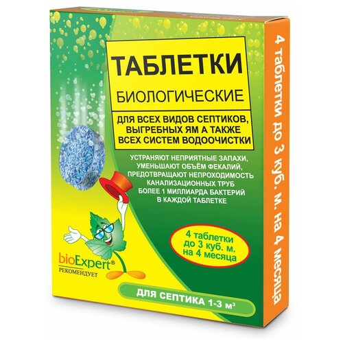 Средство BioExpert для септиков, канализации и выгребных ям (4 таблетки в упаковке)