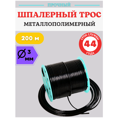 Благодатный мир Трос металлополимерный шпалерный d 3 мм и L 200 м, ПРШ-3.0
