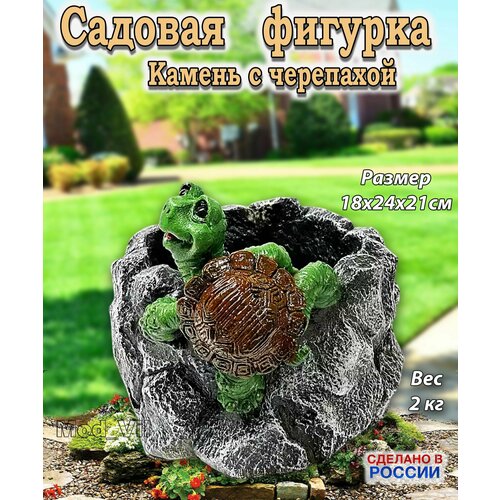 Садовая фигурка Камень с черепахой, декор для дачи, сада и огорода
