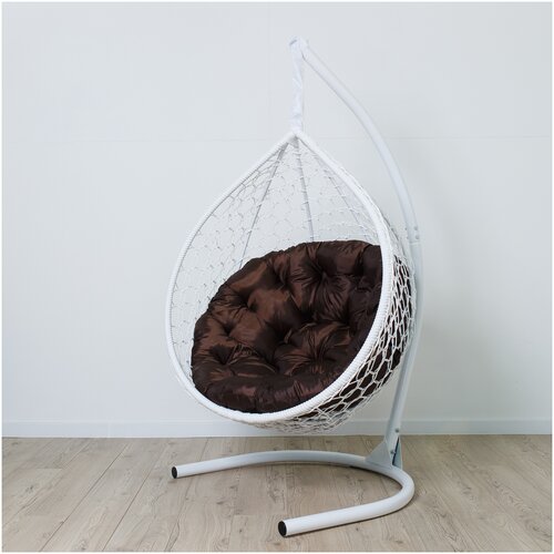 Подвесное кресло капля с ротангом коричневое, коричневая подушка