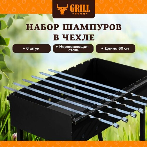 Шампур лезвие плоское, 6 шт, 600х10х2 мм, нержавеющая сталь, рукоятка дерево, Гурман, в чехле, CB2222