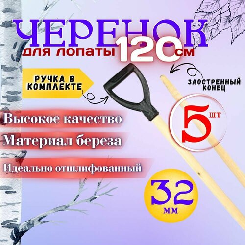 Черенок для лопаты деревянный береза 32мм с ручкой 5шт