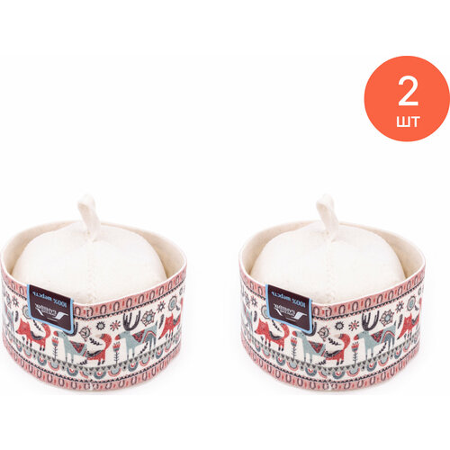 Шапка для бани Невский банщик Лисы-лоси фетр белая (комплект из 2 шт)