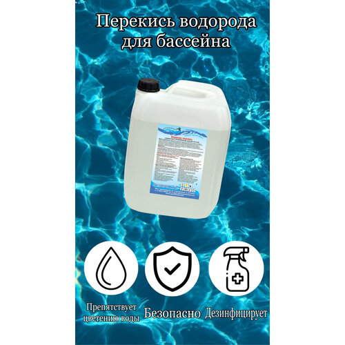 Перекись водорода медицинская для бассейна, канистра 20 литров / Пероксид 37% для очистки воды / Химия от цветения, водорослей и плесени