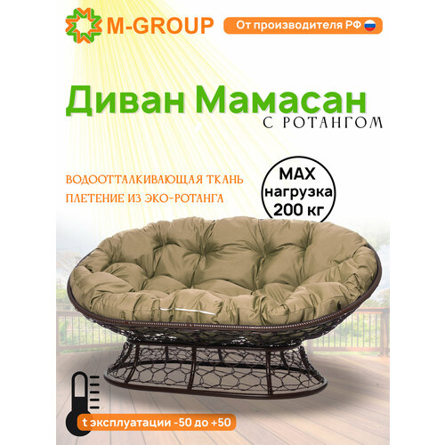 Диван m-group мамасан ротанг коричневый, коричневая подушка