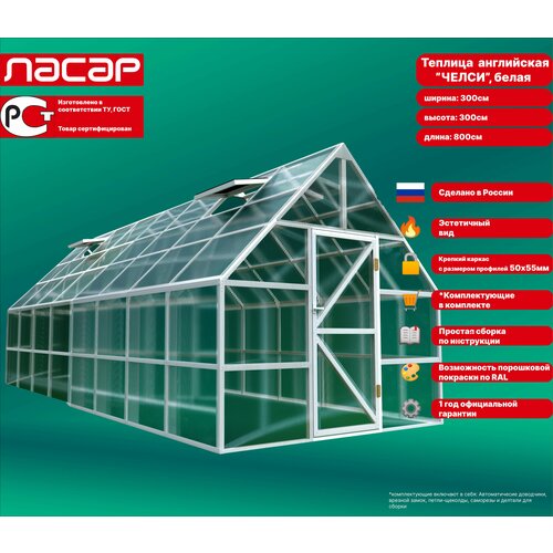 Теплица английская Челси 3х8м; белая (RAL 9003)