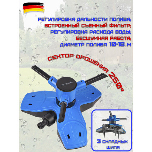 Дождеватель HAITEC HT-SW20 круговой 3-лучевой, с коннектором, площадь полива 250м², 12 сопел