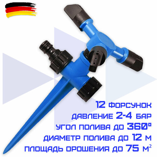 Дождеватель HAITEC HT-SW19 круговой 3-х лучевой 12 сопел, диаметр подключения 1/2"/3/4", с коннектором