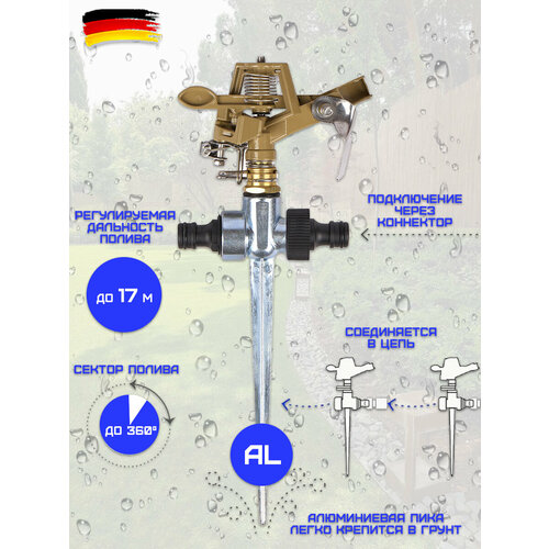 Осциллирующий дождеватель HAITEC HT-SW17, с коннектором, площадь полива 342 кв. м, 17 сопел