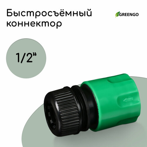 Коннектор для шланга, быстросъемный 1/2" с аквастопом, термопластичной резиной, защитой от перегибов Профи четыре сезона