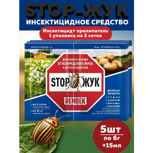Комплект Инсектицидное средство Стоп ЖУК (рембек инсектицид 6г +прилипатель 12мл), 5 штук