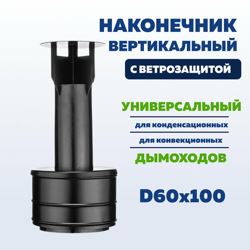 Наконечник коаксиального дымохода 60 х 100 мм вертикальный с ветрозащитой, оголовок терминала