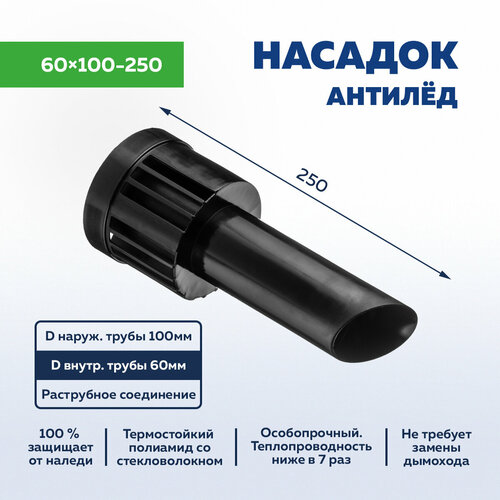 Наконечник дымохода коаксиальный 60 х 100 мм антиобледенительный из термостойкого Полиамида, насадок, насадка антилед