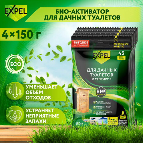 Биоактиватор для дачных туалетов и септиков, Expel, Бактерии, Средство для выгребных ям, 150 г х 4 шт
