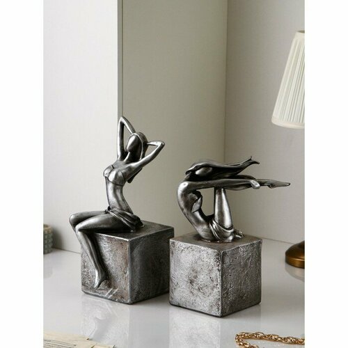 Набор фигур "Девушки на отдыхе", полистоун, 38 см, серебро, Иран, 1 сорт