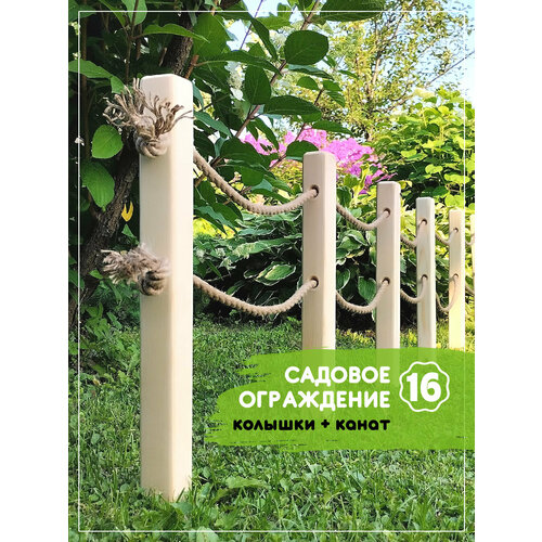 Заборчик деревянный декоративный для ограждения клумб и грядок. 16 колышков + канат. Высота ограждения 30-35 см.