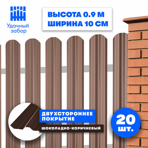 Штакетник металлический Классик (двусторонний окрас, цвет шоколадно-коричневый, высота 90 см, ширина планки 10 см, 20 шт, саморезы в комплекте)