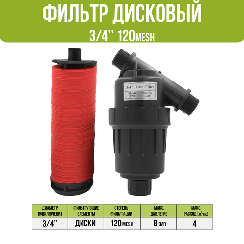 Фильтр 3/4" дисковый, 120 mesh для капельного полива (4 куб. м/час)