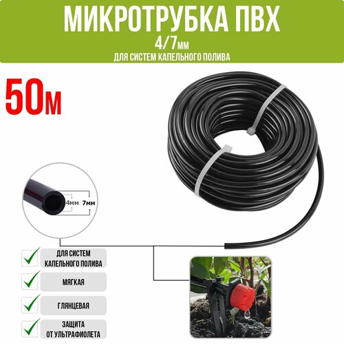 Трубка ПВХ, мягкая 1/4"(4/7мм), 4,0bar, черная для капельного полива и систем туманообразования (50м)