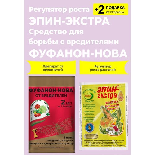 Средство "Фуфанон-нова" от насекомых-вредителей, 2 мл. + Регулятор "Эпин-Экстра", 1 мл. + 2 Подарка