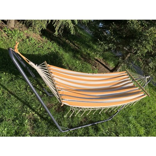 Гамак одноместный 200х100/280см с бахромой, хлопок, желтые/белые полоски, нагрузка 100кг