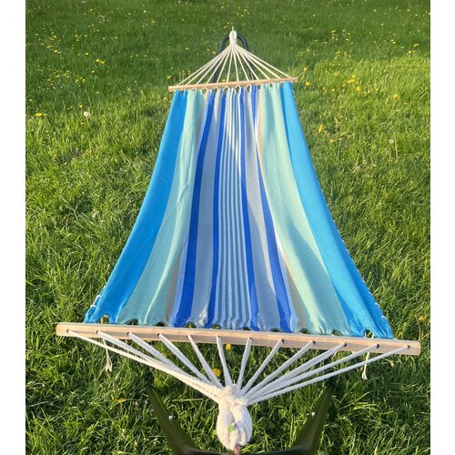 Гамак одноместный 200х100/280см с бахромой, хлопок, синий в полоску, нагрузка 100кг